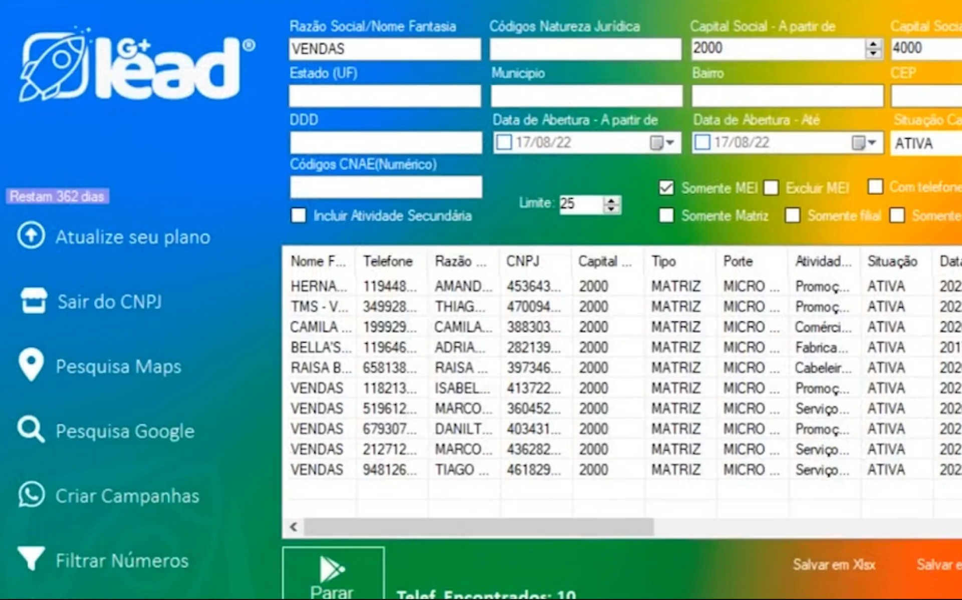 E essa ferramenta te entrega a lista de contatos do que você precisa.